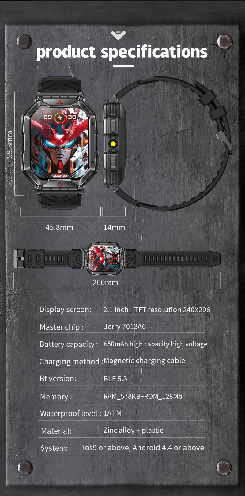 Military - Grade Smart Watch for Men | 2.1" HD, Call Answer, Compass, 1ATM Waterproof, Flashlight | 120 Sports Modes | Christmas/Birthday Gift for Outdoor Adventurers, Android/Iphone Compatible, Fitness Smartwatch
