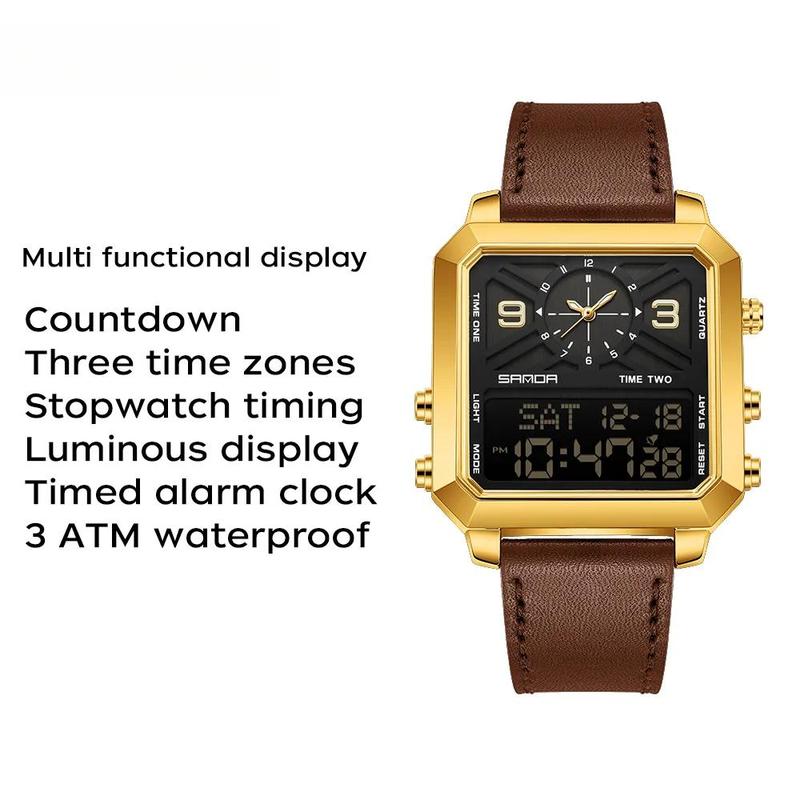 Tiktokshopblackfriday Men'S Square Multifunctional Dual Display 3 Time Zone Stopwatch Alarm Clock Waterproof Night Light Sports Business Quartz Digital Watch Fashionable Luminous Mirror Angular Minimalist Business Watch